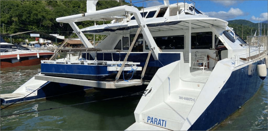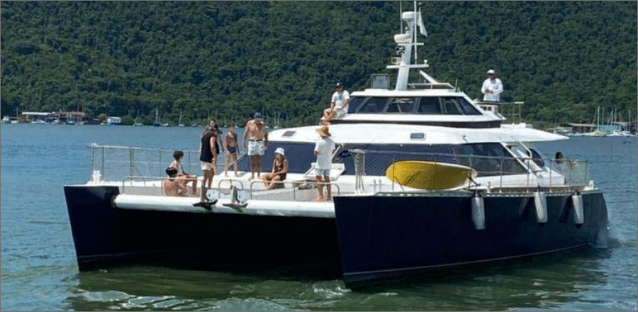 Com capacidade para até 60 passageiros no day-use, o Catamarã 54 proporciona conforto, estabilidade e amplas áreas para relaxar, tomar sol, socializar ou realizar confraternizações. É a escolha ideal para eventos, grupos e famílias que desejam explorar o Guarujá com exclusividade, comodidade e uma vista panorâmica incrível do mar.