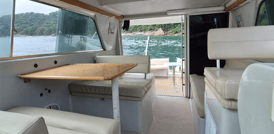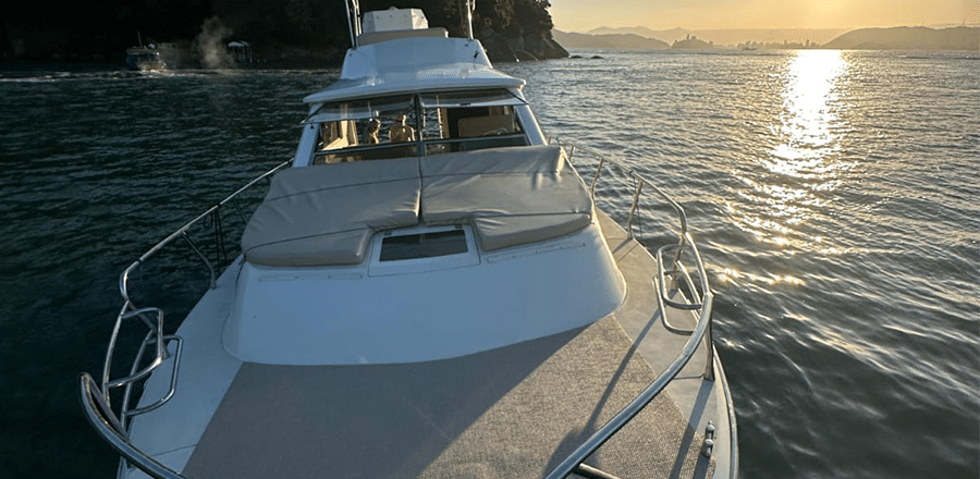 Se você busca uma experiência completa de aluguel de lancha no Guarujá, a Cabrasmar 35 é a escolha ideal para navegar com conforto, segurança e muito estilo. Com 35 pés de comprimento e capacidade para até 12 pessoas, essa lancha espaçosa conta com cabine aconchegante, banheiro, cozinha compacta, fly-bridge e uma charmosa área de solário para relaxar ao sol. A bordo, você aproveita churrasqueira elétrica ou a carvão, fogão elétrico, micro-ondas, home theater e sistema de som com entradas USB, Aux e CD, além de enxoval completo com toalhas, lençóis e cobertores, utensílios como copos, talheres e pratos, e itens de lazer como boias infláveis, snorkel e pé de pato. Tudo isso com coletes salva-vidas para todos, garantindo um passeio perfeito para grupos de amigos ou famílias que desejam viver um dia inesquecível no litoral paulista.