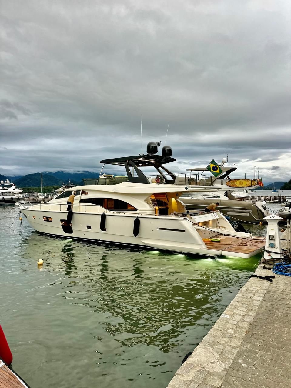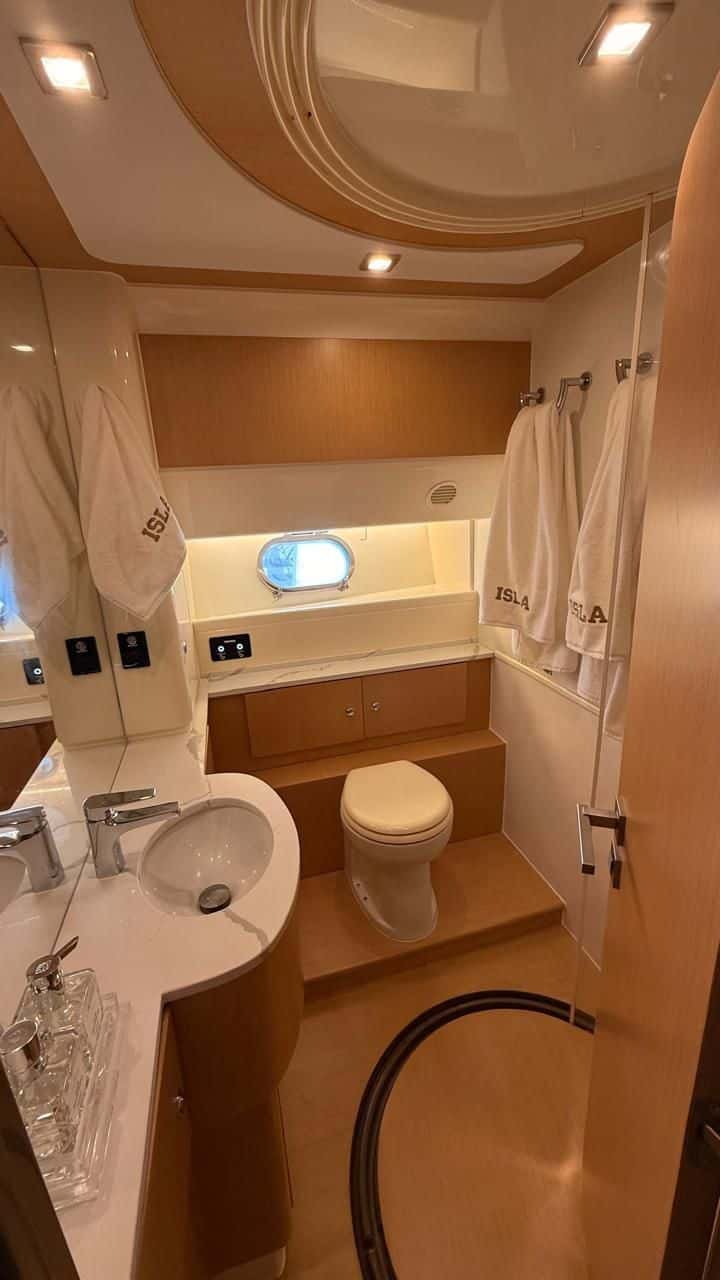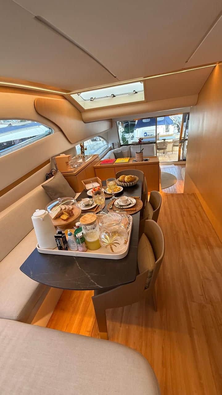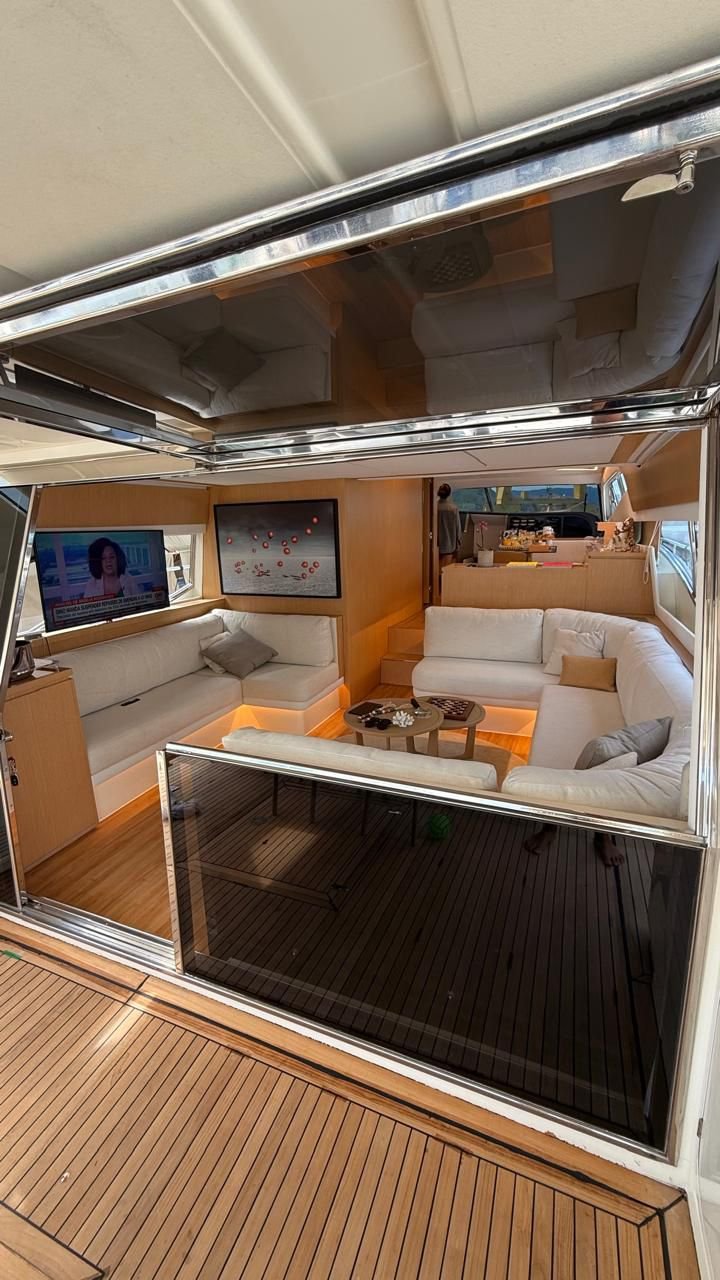 Elegância, potência e conforto em alto nível. A Ferretti 74 traz o design italiano que encanta à primeira vista, com linhas modernas, flybridge espaçoso para curtir o visual, ampla praça de popa integrada à plataforma para mergulhos e um salão social iluminado que convida a celebrar. A bordo, tudo foi pensado para uma navegação suave e silenciosa, com ambientes climatizados, cozinha completa e cabines confortáveis que transformam o dia no mar em uma experiência de resort flutuante. Ideal para momentos especiais, ensaios fotográficos, comemorações e roteiros exclusivos entre ilhas. Se você busca uma experiência premium, esta é a escolha para viver o melhor do litoral com estilo e segurança.