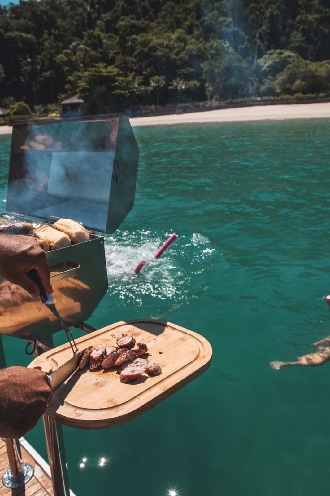 Se você estiver hospedado em um local com píer, podemos buscar o grupo de lancha. A operação depende de condições de atracação e autorização do local. O combustível utilizado nesse deslocamento também é cobrado à parte.