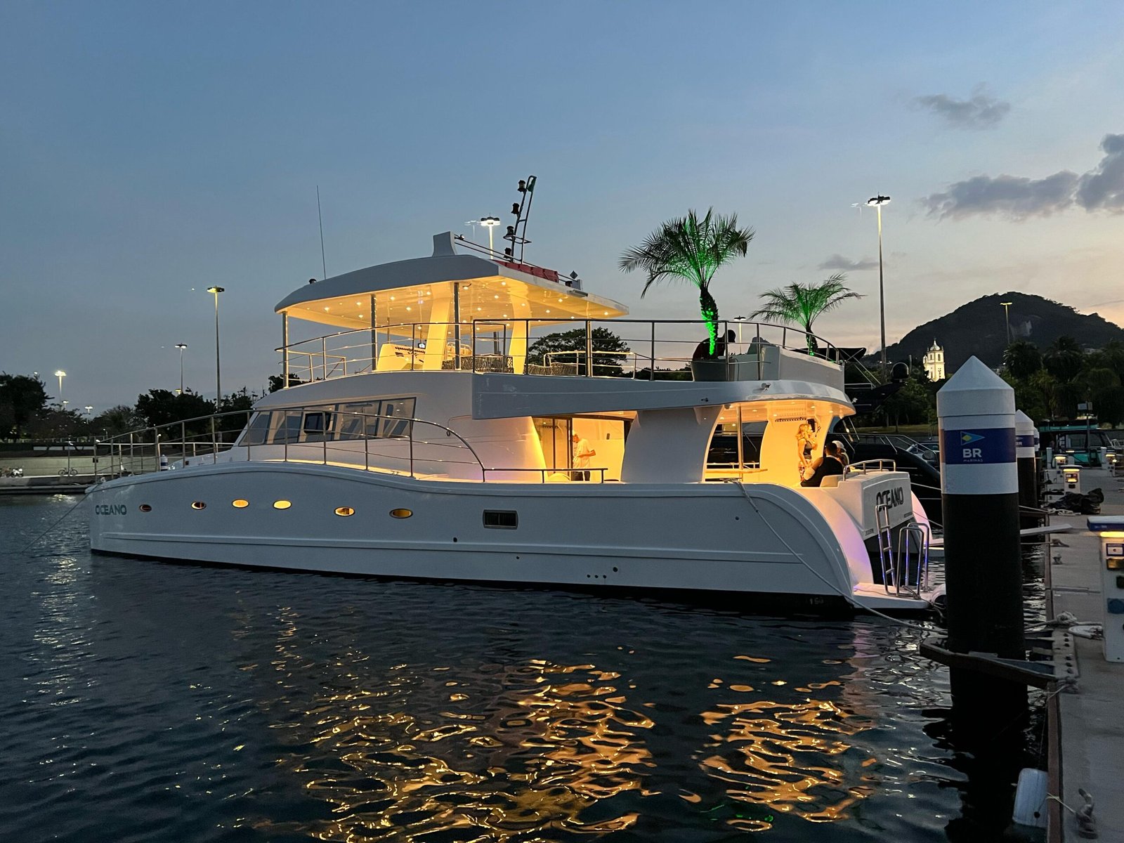 O Catamarã 63 pés – Luxo Deck Lounge é perfeito para comemorações elegantes no Rio: navegação por águas abrigadas (Urca, Adão e Eva, Morcego e, conforme o mar, Praia Vermelha), com períodos de 5 horas nos turnos manhã (10h–15h), tarde (16h–21h) ou noite sob consulta. A bordo, você conta com comandante, marinheiros e supervisão integral, salva-vidas GMAR-RJ, som com bluetooth, luzes de festa, forno elétrico, coolers e seguro para todos